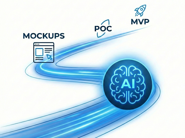 We use AI to dramatically shorten the cycle from idea to working solution. AI-assisted design, development, and data generation allow rapid creation of functional mockups, POCs, and MVPs.